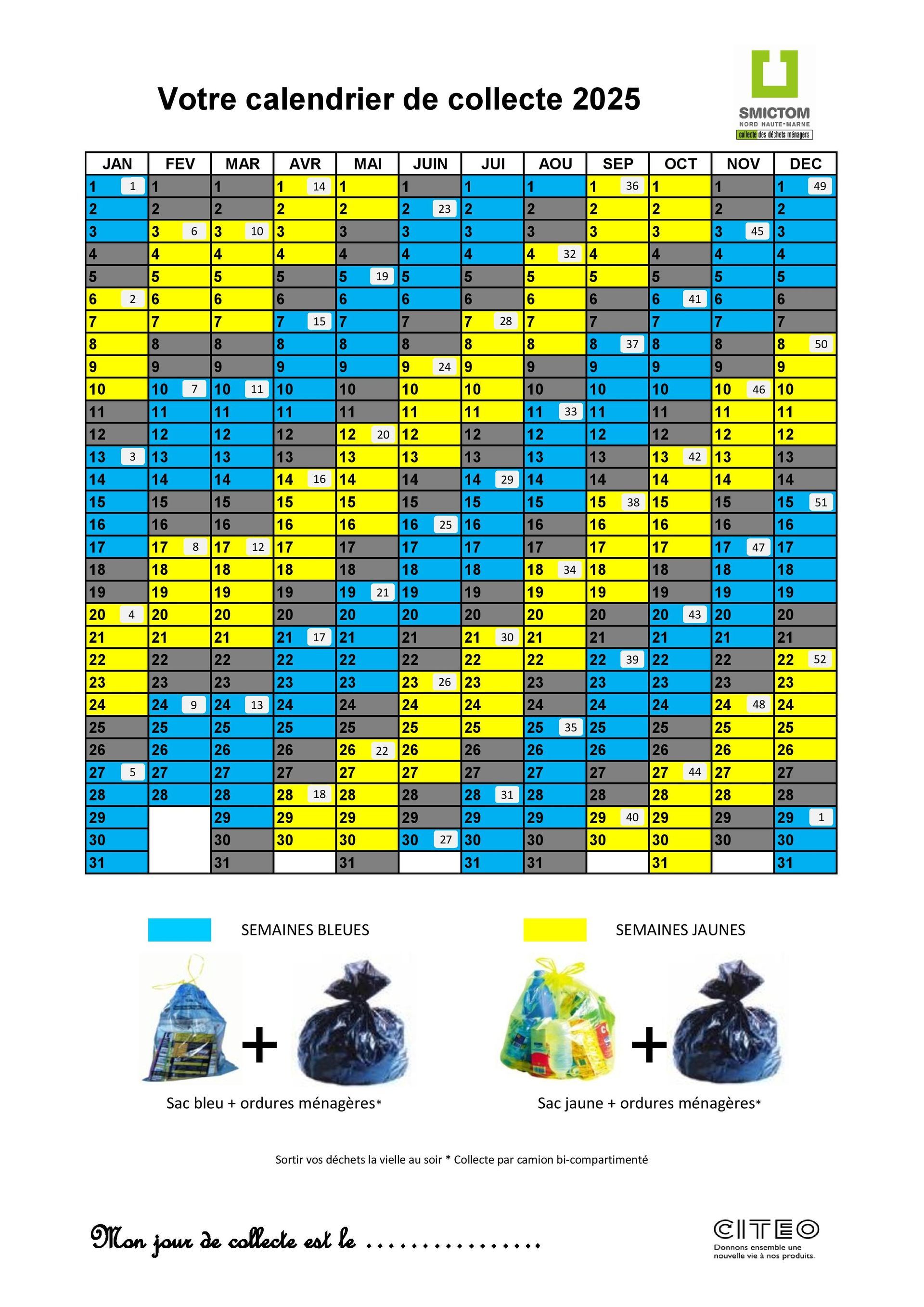 Pas de changement, pour le bac ou sac bleu où vous y mettez le papier et petit carton.